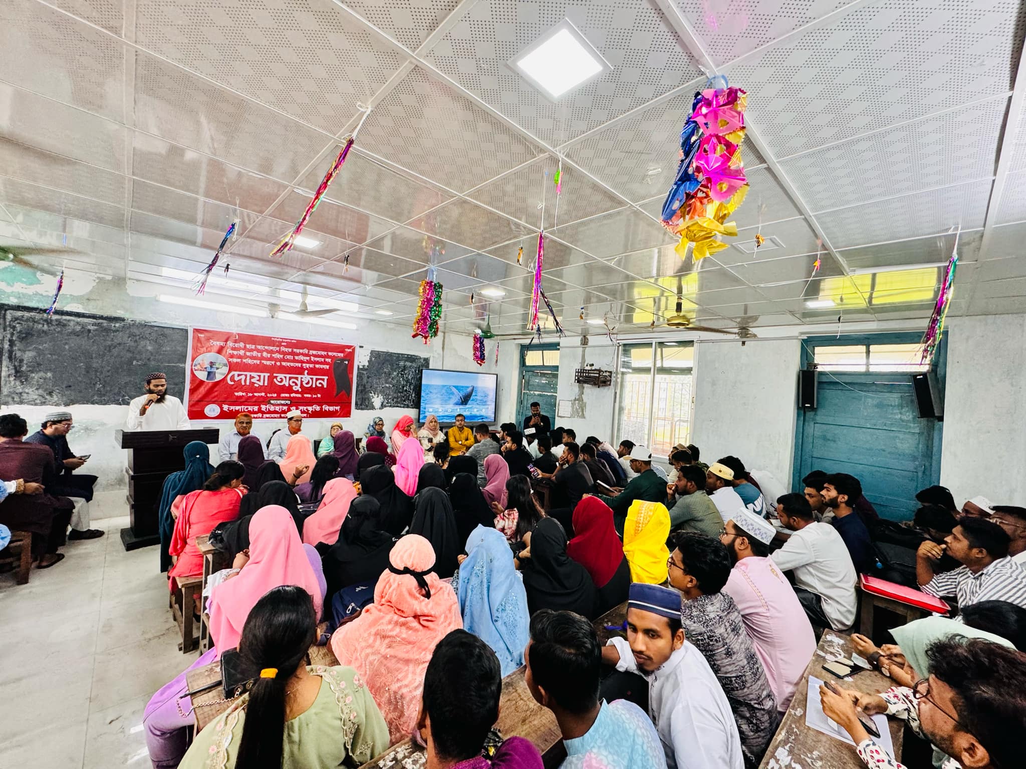 রবিবার (১৮ আগস্ট) সকাল ১১ টায় কলেজের ইসলামের ইতিহাস ও সংস্কৃতি বিভাগের শিক্ষার্থীদের পক্ষ থেকে শহীদদের জন্য দোয়া মোনাজাতের আয়োজন করা হয়।