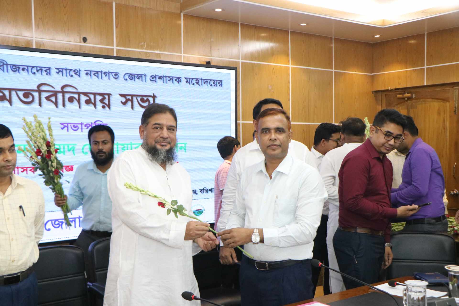আজ ১৭ সেপ্টেম্বর মঙ্গলবার বিকাল ৩ টায় জেলা প্রশাসন বরিশালের আয়োজনে জেলা প্রশাসক কার্যালয়ের সভা কক্ষে বরিশালে সদ্য যোগদানকৃত জেলা প্রশাসক মোহাম্মদ দেলোয়ার হোসেন এর সাথে বরিশাল জেলার সুধীজনদের মতবিনিময় সভায় নবাগত জেলা প্রশাসক উপস্থিত সুধীজনদের ফুল দিয়ে বরণ করেন।